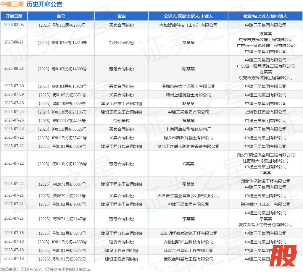 本站消息,根据天眼查APP显示高开网,近日公布了一则中建三局集团有限公司作为被告/被上诉人的开庭公告高开网,详细内容如下: